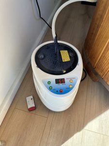 A keletkező gőz nem zavaró, a kialakítás miatt bent marad a szaunában, lecsapódik és egy tálcába gyűlik össze. Kinyitáskor kiáramló gőz egy gyors szellőztetéssel távozik a lakásból.