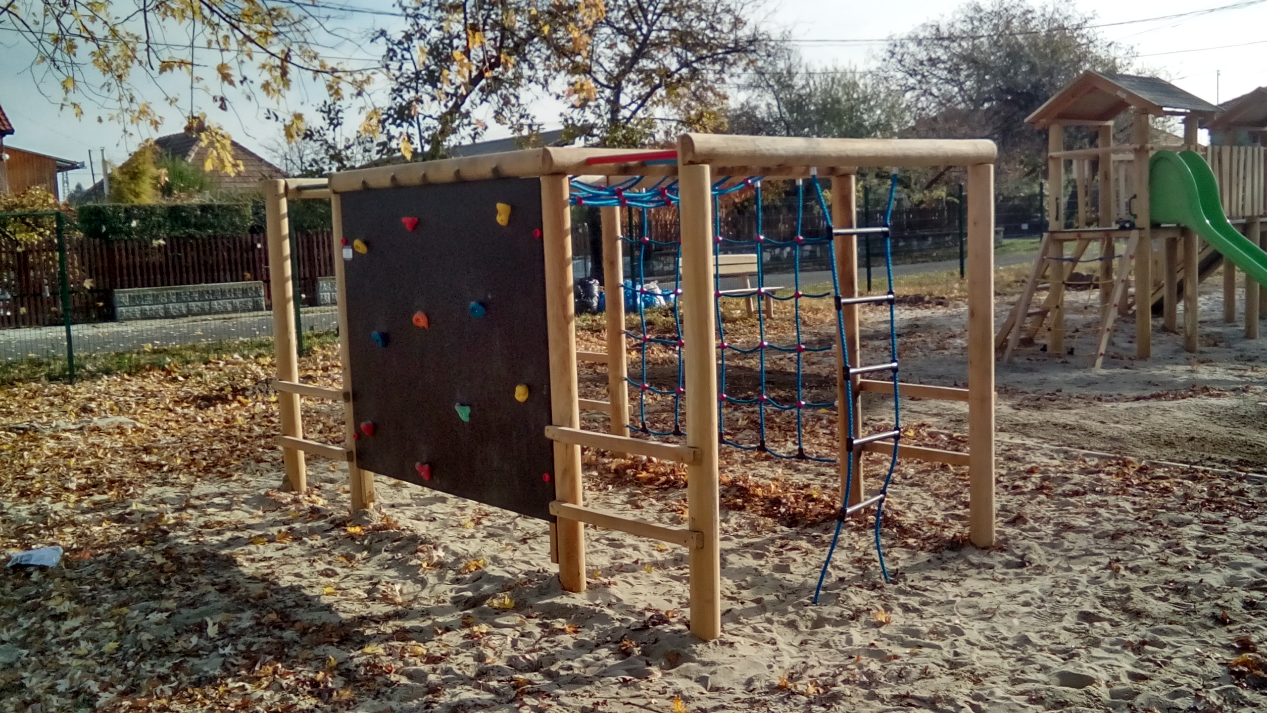 Az Acacia termékcsaládba tartozó mászónégyszög alapanyaga szíjácsmentes akác oszlopok, a mászófal, csúszásmentes HDPE lemezből készül, acélbetétes kötelet és színterezett acél kiegészítőket használunk.